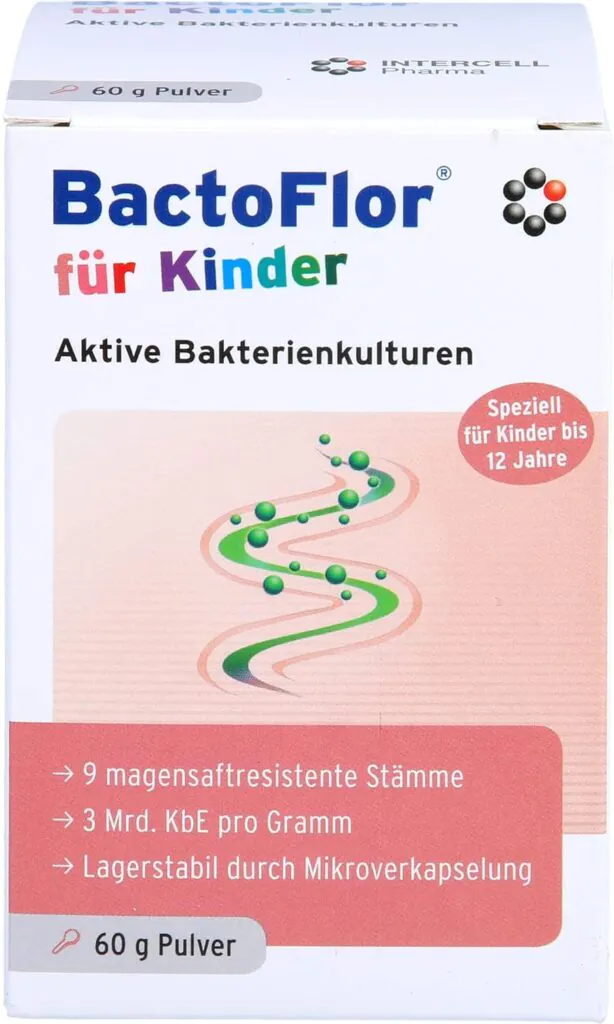 Enthält 3 ausgesuchte probiotische Bakterienkulturen in einer Gesamtkeimzahl von 1 x 108 KBE* / g Pulver: